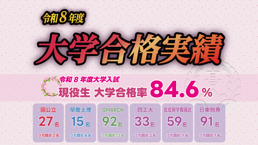令和8年度大学入試の合格実績をお知らせします(4月7日更新)。