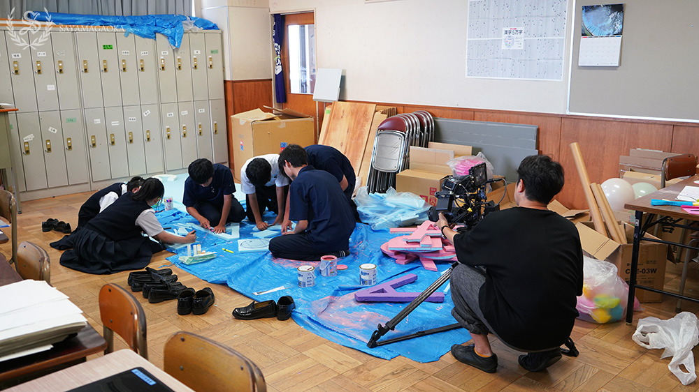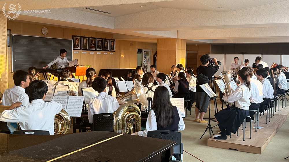 夏休み期間を活用して、本校付属中学校を中心に、吹奏楽部の演奏、書道部の書道パフォーマンス、生徒会運営委員会による狭丘祭準備の様子、科学部で飼育している生物の観察・給餌の様子、家庭科部の生徒による調理風景、女子バトミントン部の練習風景など、日常の学びと活動の中にある「好奇心」をテーマに撮影が行われました。
