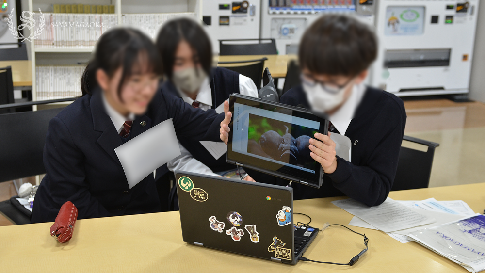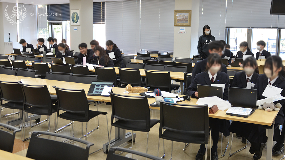 本校では今年度、HelloWorld株式会社が提供するオンライン学習支援ツール「WorldClassroom」を導入し、日頃の学習において、AIによる「音読練習」や「プレゼン練習」などの機能を活用しながら英語のスキルを磨いています。