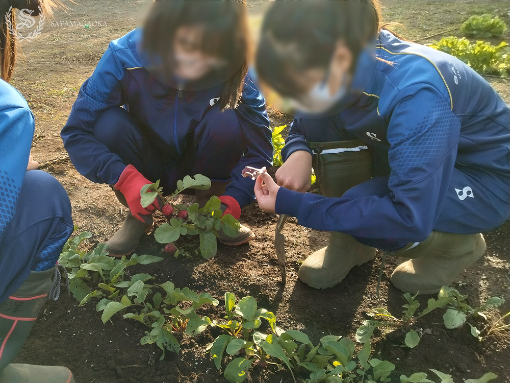 【付属中学校】冬野菜の収穫に向けて取り組んでいます。