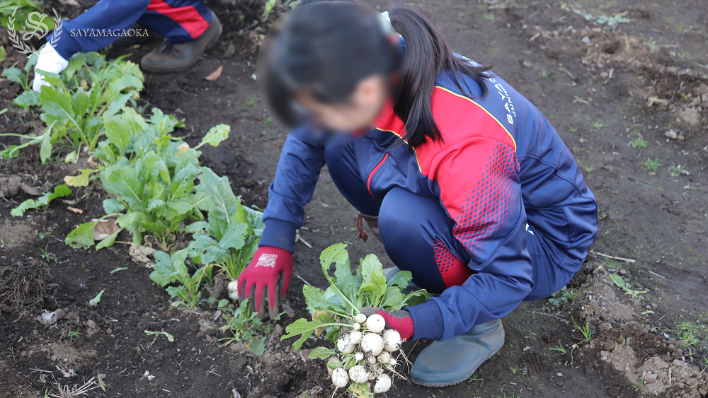 【付属中学校】冬野菜の収穫に向けて取り組んでいます。
