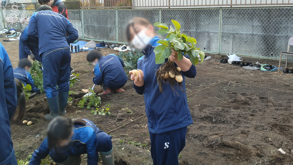 大きく育った白菜を抱えたり、ジャガイモを傷つけないよう丁寧に土を掘り起こしたりする生徒たちの表情には、達成感と笑顔が溢れていました。