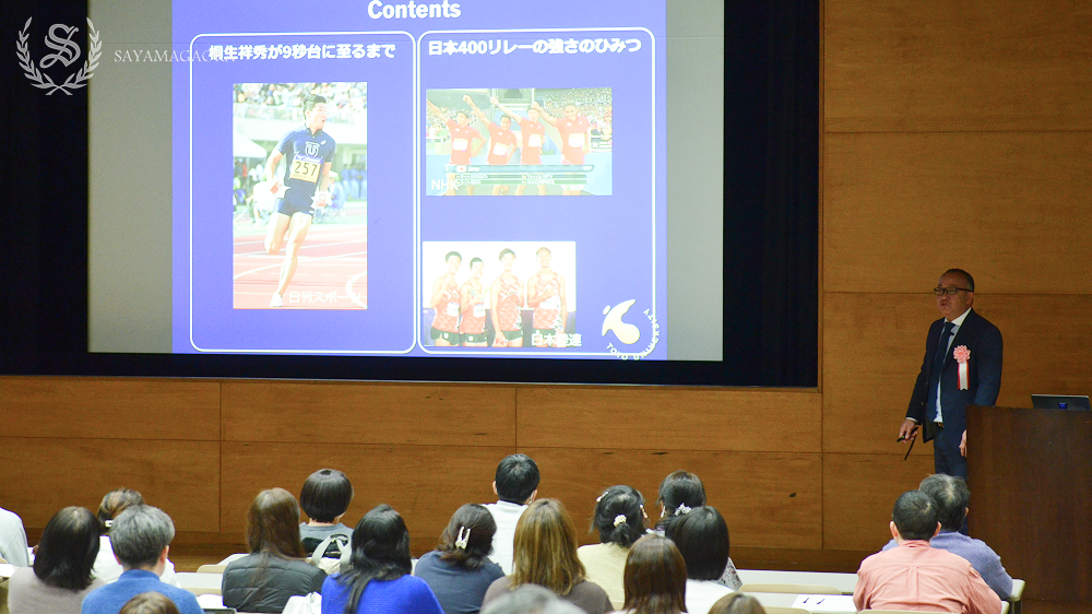 講演では、ご自身が選手としてオリンピックに出場した際の緊迫した空気感や、世界のトップアスリートと対峙した時の心境を鮮やかに語ってくださいました。また、桐生祥秀選手をはじめとする日本を代表する選手たちの育成現場において、何を大切に日々の指導にあたっているのかという具体的なエピソードも紹介されました。