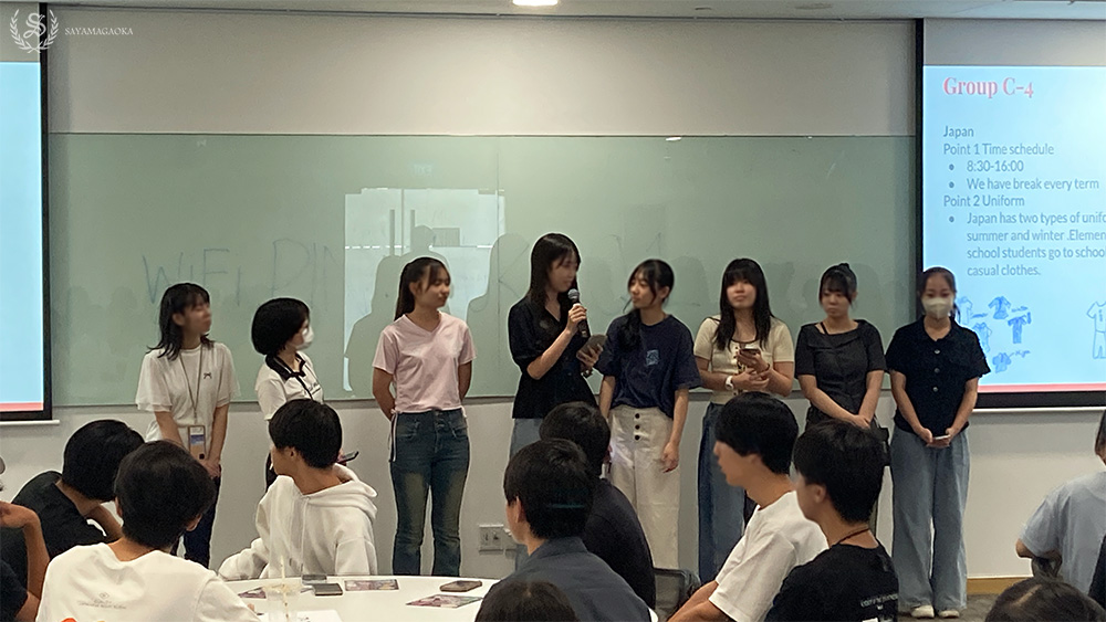 最後に、各グループで行った議論を全体の前で発表する時間が設けられ、生徒たちは英語で自分たちの意見を伝えようと積極的に取り組んでいました。