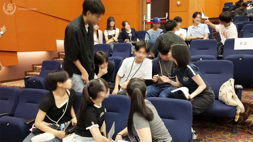 最後に少人数に分かれて 交流タイム が行われ、NUSの学生に英語で質問をしたり、互いの学生生活について話したりする姿が見られました。「将来海外で学びたい」「英語力をもっと伸ばしたい」など、多くの刺激を受けた様子でした。