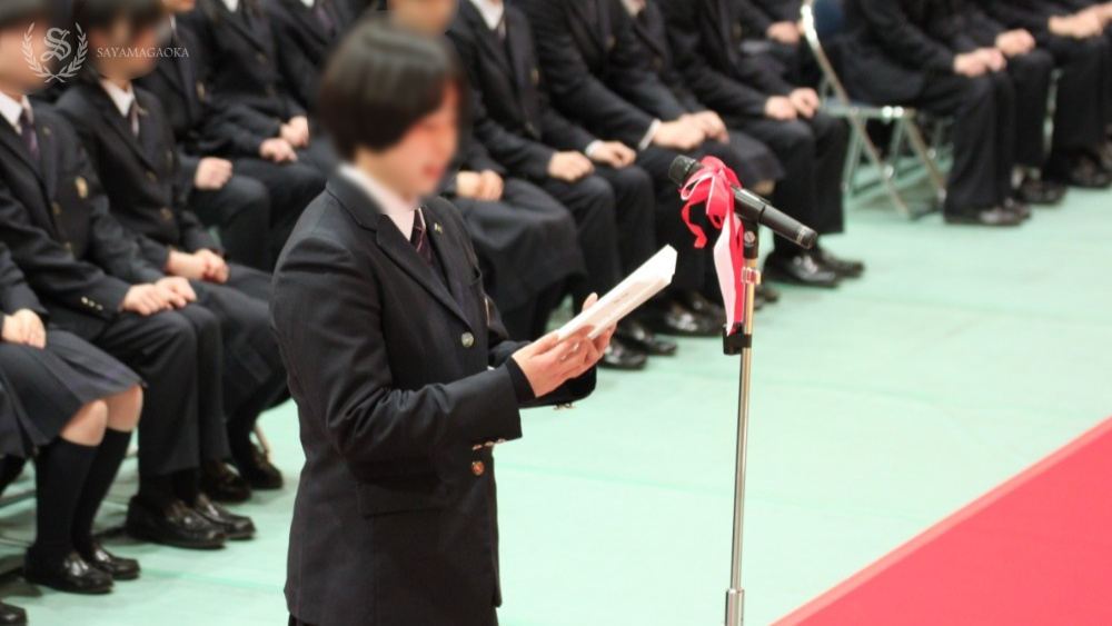 本校での経験と誇りを胸に未来へ歩みを進める決意が力強く語られ、会場は感動的な拍手に包まれました。