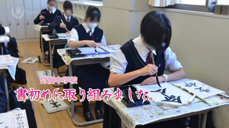 付属中学校では、日本の伝統文化に触れる書初めの授業を実施いたしました。本行事は、生徒たちが毛筆を通じて集中力を養い、新たな年を迎える決意を文字に託す貴重な機会となりました。完成した作品は校内に展示され、新春らしい清々しい雰囲気を醸し出しています。 -