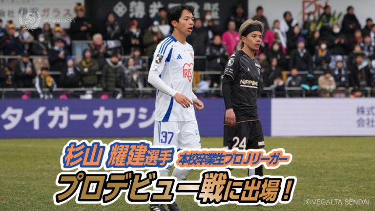 2026年2月7日、本校サッカー部出身の卒業生の杉山耀建選手(ベガルタ仙台所属)が、今シーズンのJリーグ開幕戦において、スターティングメンバーとしてプロの舞台に堂々たるデビューを果たしました。続く第二節にも連続でスターティングメンバーとして出場を果たし、攻守にわたりチームの勝利に大きく貢献しています。本校で培った技術と精神力を糧に、プロの世界で飛躍する卒業生の活躍を心よりお祝い申し上げます。 -