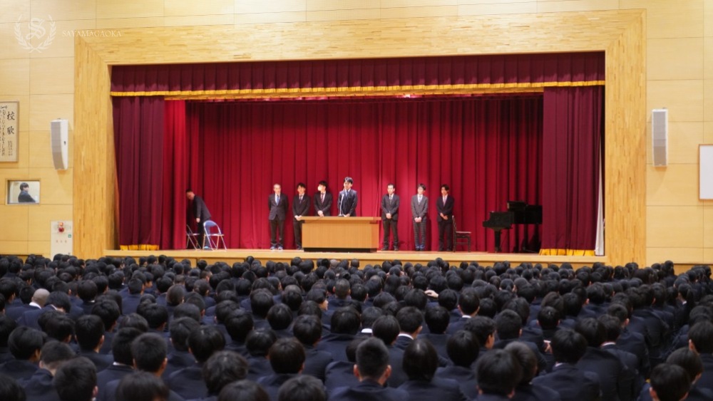 続いて、本年度より本校理事長に就任いたしました齊藤理事長より、ご挨拶がありました。その後、本年度から本校に着任された新任の先生方から、生徒たちへ向けて自己紹介が行われました。生徒たちは先生方の話に熱心に耳を傾け、温かい歓迎の拍手を送りました。