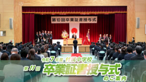 下記により、令和7年度 第66回 高等学校 卒業証書授与式を挙行いたします。