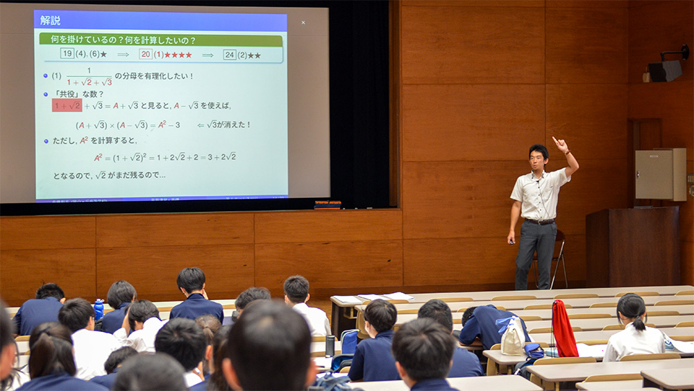 また、英語、数学の一部に習熟度別、受験科目の出題範囲別の授業を取り入れ、生徒の学習状況に応じた授業展開がなされています。