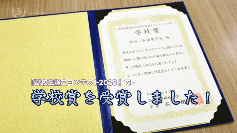 この度、本校は高崎健康福祉大学主催『高校生論文コンテスト2025』において、学校賞を受賞いたしました。本コンテストに対し、生徒たちが積極的に多数の論文を応募し、熱心に取り組んだ姿勢が高く評価された結果です。全国規模の選考において、本校の教育活動の成果を証明するものとして、大変光栄に存じます。 -